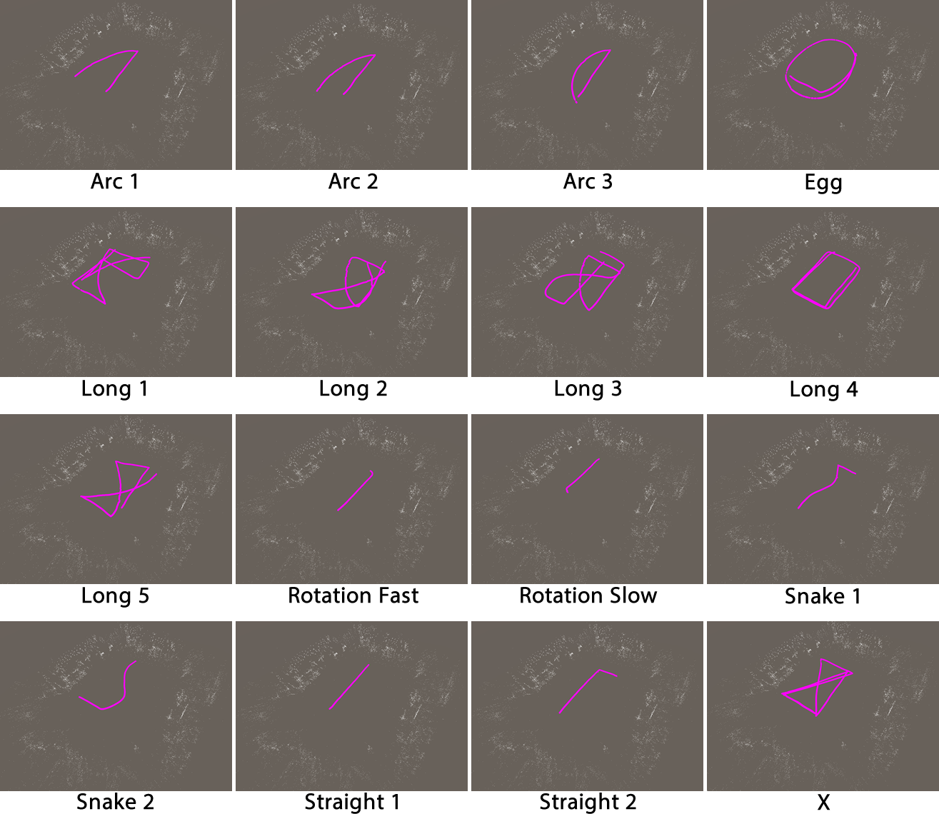 This section includes the data for all 16 trajectories used in this paper. These trajectories are shown below.